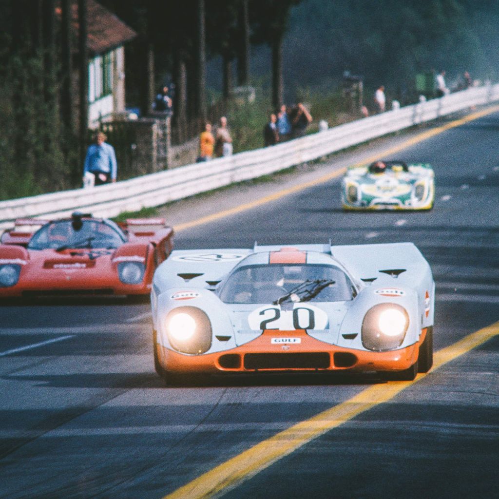 By midnight, the rain was pouring heavily and a couple more cars were involved in accidents. The Team Gulf-Oil Porsche #20 driven by Siffert and Redman was leading the race and another Porsche 917 driven by Elford and Ahrens in second and a distant Ferrari driven by Jack Ickx in third. Every driver was slowing down at this point, thanks to the horrible weather conditions, but the Ferrari driver saw it as an opportunity to close the gap. Ickx started to “drop the hammer”, imposing an insane pace. He was a very talented driver indeed (had won Le Mans in 1969 driving a Ford GT40) and he was using every bit of his skills to drive fast at night and in the pouring rain. After a few laps he was in fact getting dangerously close to the leaders, when Ahrens had to stop to change a flat tire, Jack Ickx assumed the second position and now he had a clear path to hunt down the leading Porsche driven by Jo Siffert.