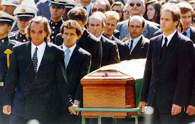 The picture above shows Emerson Fittipaldi, Gerard Berger, and Alan Prost as pallbearers, Rubens Barrichello was also there, behind Berger. Brazilian government declared 3 days of official mourning.