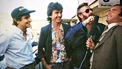 Nelson Piquet, Harrison, and Ringo having fun with Jack Stewart.