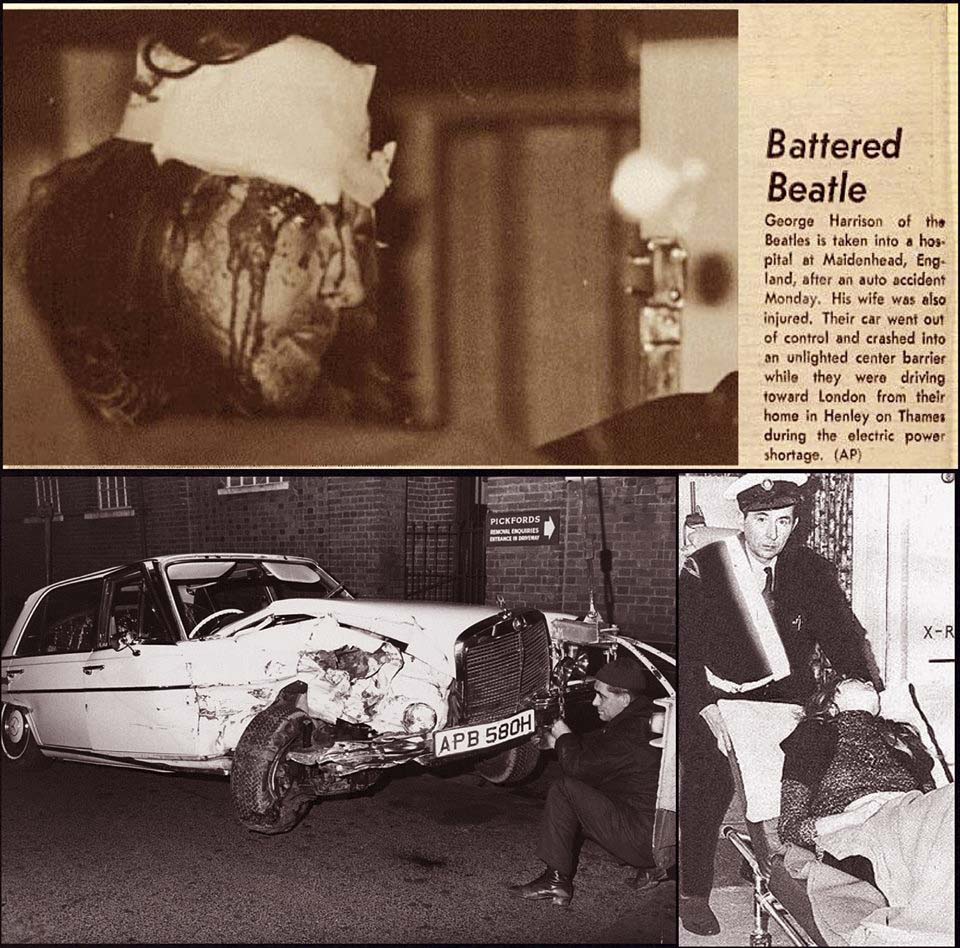 George became hooked on Mercedes-Benz, he owned quite a few of them during his years as a car enthusiast, and on one occasion, in 1972, he and his wife Patty almost lost their lives inside a white 300SEL, when George hit a lamp pole while in route to a party in London. (pictures above).