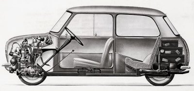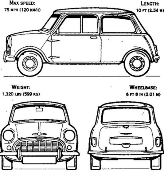This new concept should comfortably fit 4 adults and be small enough to be contained in a box measuring 3.0×1.2×1.2 meters or 10x4x4 feet. The car also should have a good acceleration and decent handling. Not an easy task at all but Mr. Issigonis was the right person for the job, after all, he was the designer of the Morris Minor, an astounding success in the UK and Europe.