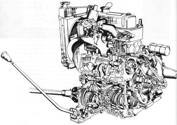 Sir Lord had put the team in a very tight situation (literally), with only a 1.2-meter width, there wasn’t enough space to place engine and transmission side-by-side. To solve that problem, Mr. Issigonis came up with a very clever idea: to install the transmission right underneath the motor, bolted straight to the engine block, having both systems sharing the same lubricant oil.