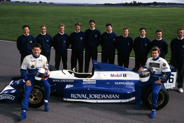 The Paul Stewart Racing Team, in a promotional picture, for the 1993 Formula 3000 season. Gil de Ferran is the first one on the left