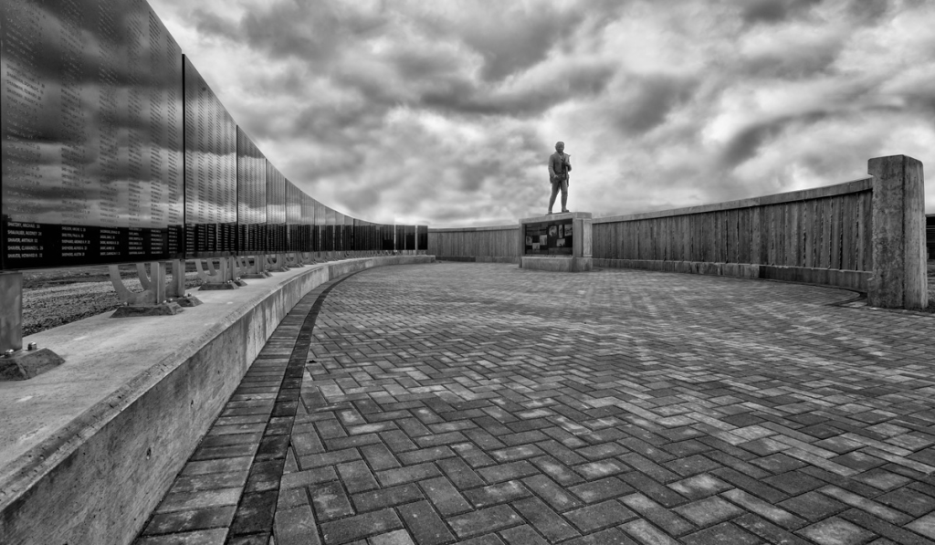 This 300-foot airfoil-shaped granite wall is watched over by a bronze airman. The names and ages of these young men and women have been etched on this wall as a permanent tribute to the ultimate sacrifice they made for our freedom.