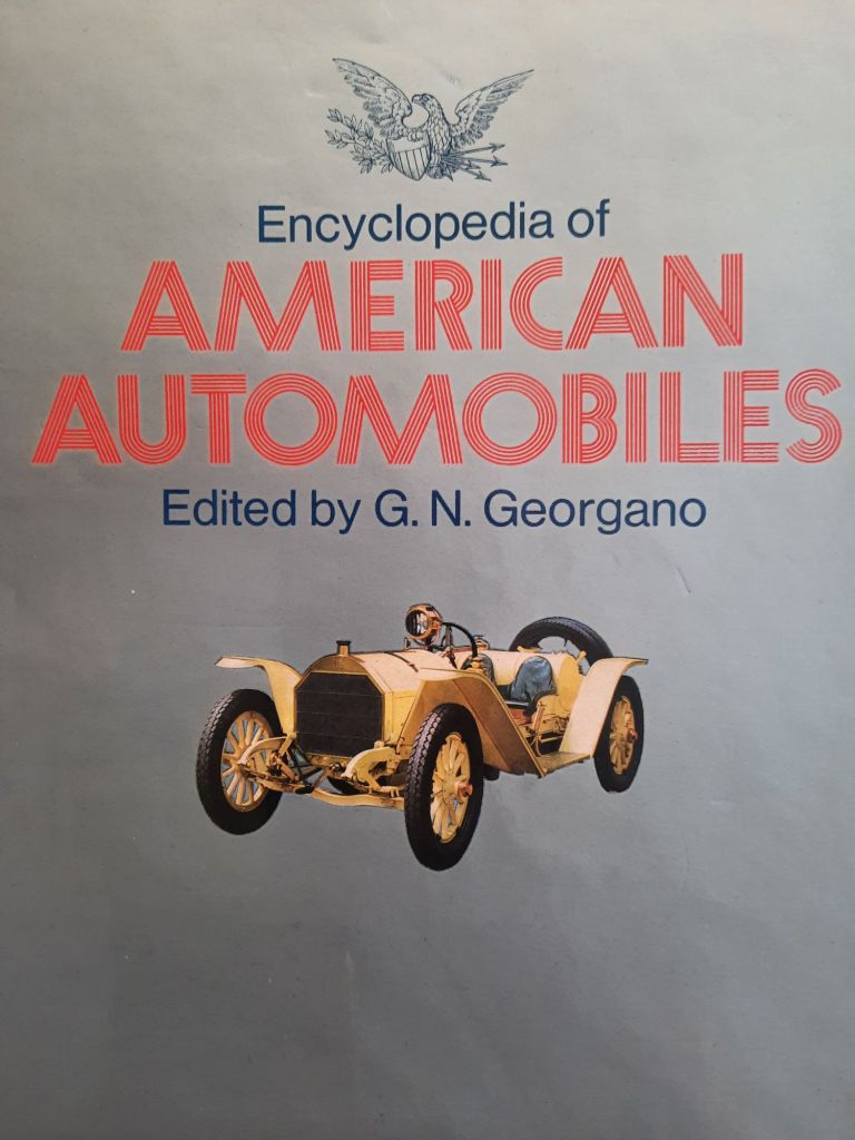This is a 1971 edition of the Encyclopedia of American Automobiles, created and edited by G.N. Georgano. The book is an excerpt from a larger work, The Complete Encyclopedia of Motorcars, published in 1968. I believe that when the number of American and Canadian automakers became too many, Mr. Georgano was compelled to organize a separate book.