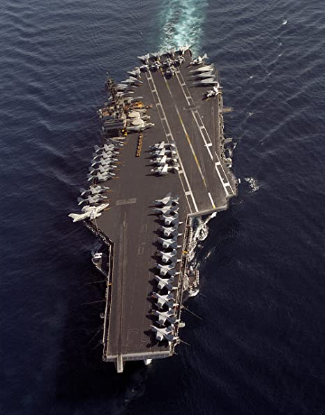 The carrier is capable to transport 85 aircraft, some of them could be armed with nuclear missiles. The ship is manned by a crew of 5,624 officers and seamen.