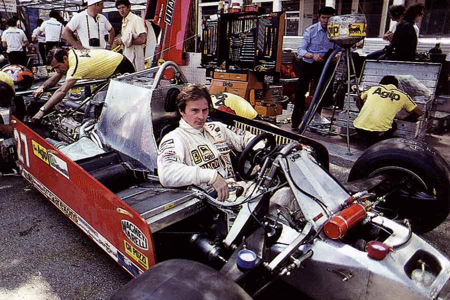 In this rare picture showing a “naked” 126C2, Gilles patiently waits for the mechanics to give their final touches.