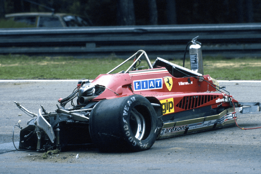 Two weeks later, Villeneuve was blasting through the Zolder circuit, during the last minutes of the qualifying session for the Belgian GP. He had already worn out his second set of super sticky qualifying tires, he knew there was no time to go back to the pits for a fresh set. On his last flying lap, he failed to beat the time of Pironi, but instead of calling it quits and heading back to the pits, Gilles continued to go flat out, after all, it was “total war” against his teammate, and he couldn’t accept this partial defeat.