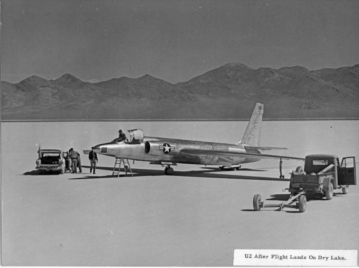 Kelly Johnson, talking with USAF pilot Gary Powers, during the trials of the U2 spy plane.
